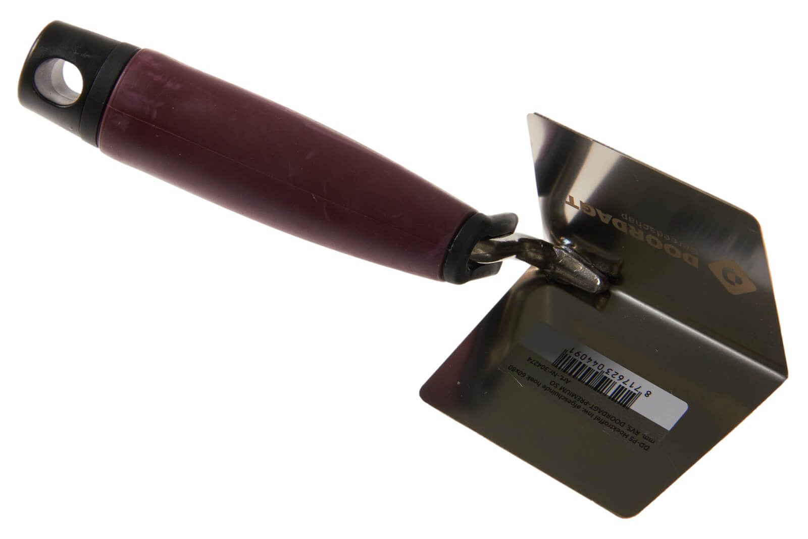 De DD-PS Hoektroffel Inw. met afgeschuinde hoek 60x80 mm RVS, uit de DOORDAGT-PREMIUM SOFT lijn, is een innovatief stuk gereedschap ontworpen voor precisiewerk bij het afwerken van scherpe binnenhoeken. Deze speciale hoektroffel, voorzien van afgeschuinde schuinde bladen, maakt het mogelijk om moeilijk bereikbare plekken en fijne details met grotere nauwkeurigheid aan te pakken. Met afmetingen van 60x80 mm biedt het gereedschap een uitstekend evenwicht tussen dekking en controle, wat essentieel is voor hoogwaardige afwerkingsklussen. Het gebruik van roestvrij staal zorgt voor duurzaamheid en weerstand tegen corrosie, terwijl de ergonomische PREMIUM SOFT handgreep vermoeidheid vermindert en het comfort tijdens langdurige projecten verhoogt. Deze DD-PS Hoektroffel is perfect voor professionals die een precieze afwerking en ergonomisch ontwerp waarderen in hun stuc- en pleisterwerk.
